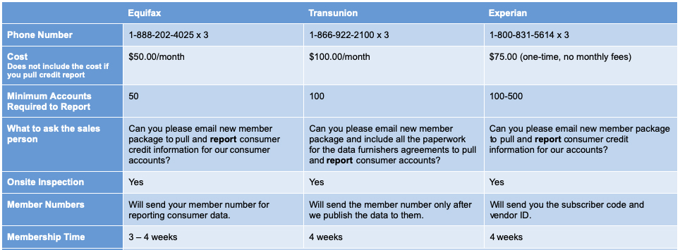 Step 2 – Sign up with credit bureau(s) as a data furnisher